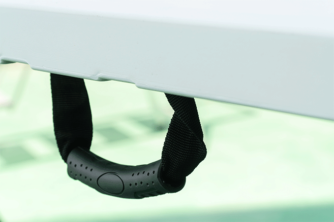 • วัสดุโต๊ะ: ขาตั้งเหล็ก, ท็อปเปอร์พลาสติก HDPE ป้องกันรังสียูวี