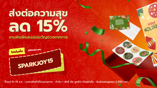 ส่งต่อความสุขปลายปีนี้ ด้วยส่วนลด 15% สำหรับงานพิมพ์และของขวัญสุดพิเศษ