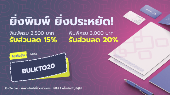 ปลดล็อกส่วนลดสูงสุด 20% สำหรับงานพิมพ์ที่ใช้ในธุรกิจ Q4 นี้ ด้วยโปรพิเศษสั่งเยอะลดเยอะ