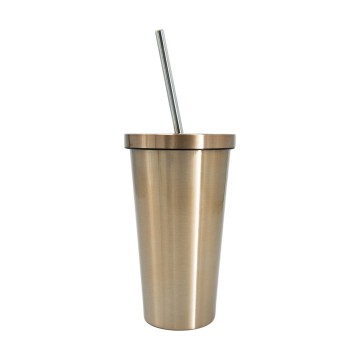 แก้วน้ำสแตนเลสผิวด้าน พร้อมฝาปิดและหลอด ขนาด 530 มล.