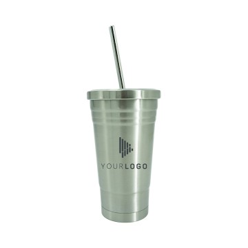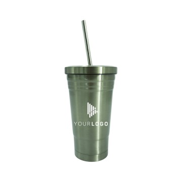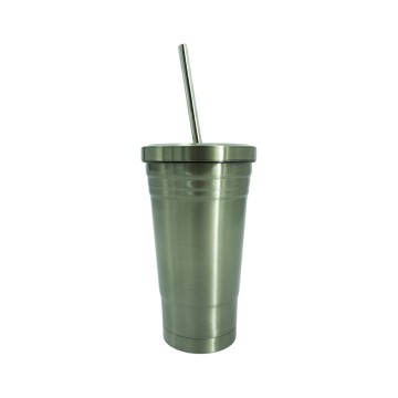 แก้วน้ำสแตนเลสพรีเมี่ยม พร้อมหลอด ขนาด 450 มล.