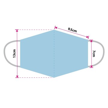 • Dimensions and printing area: Dimensions of the finished mask are 19x7x13cm (see image on top of page)