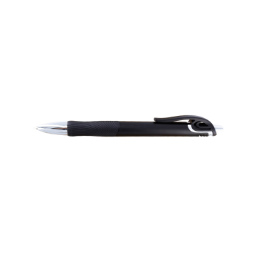 A comfortable hold pen with soft silicone fingered. The material is plastic based. It comes up with five different colors (black, blue, green, red, and silver).